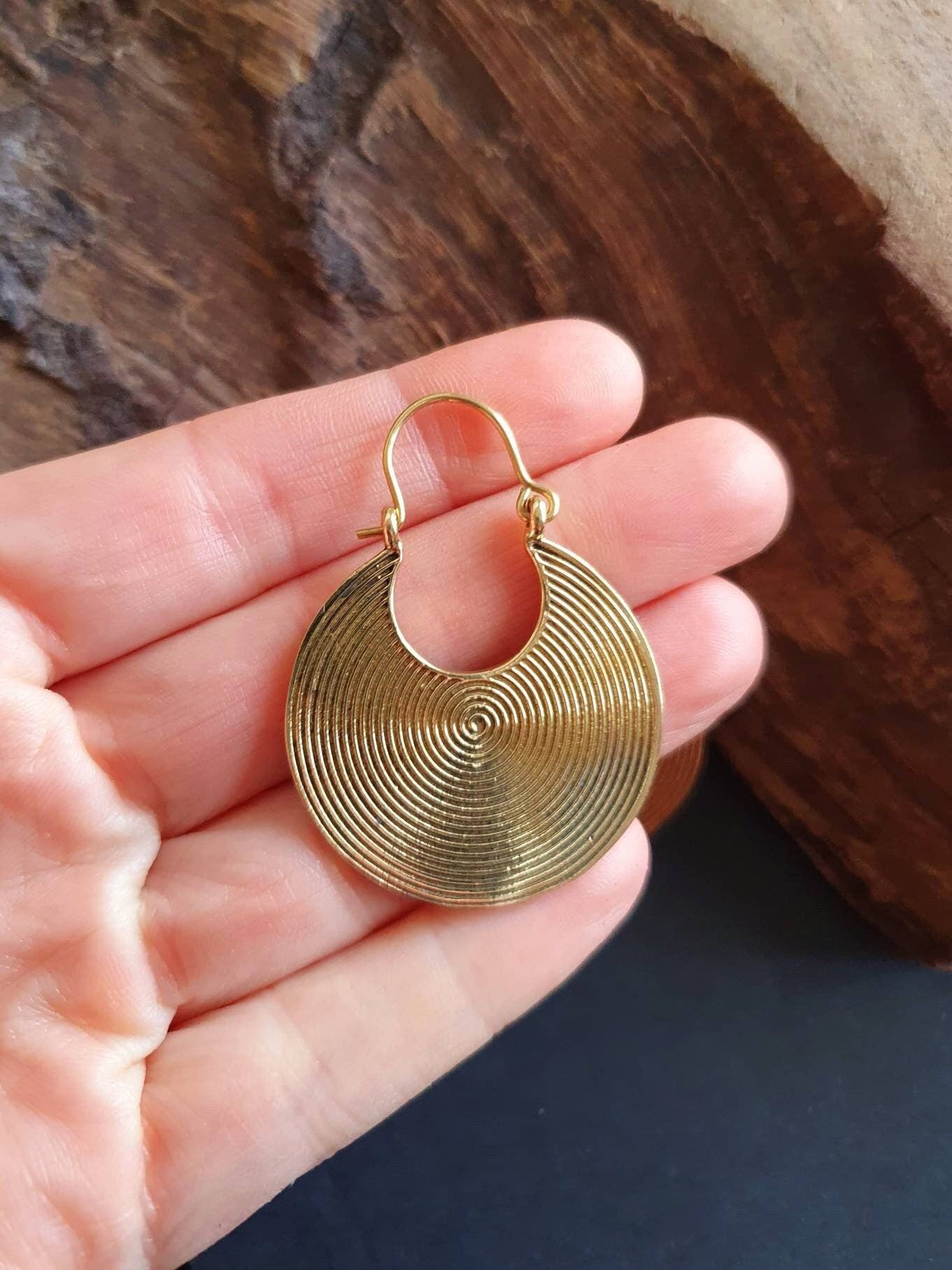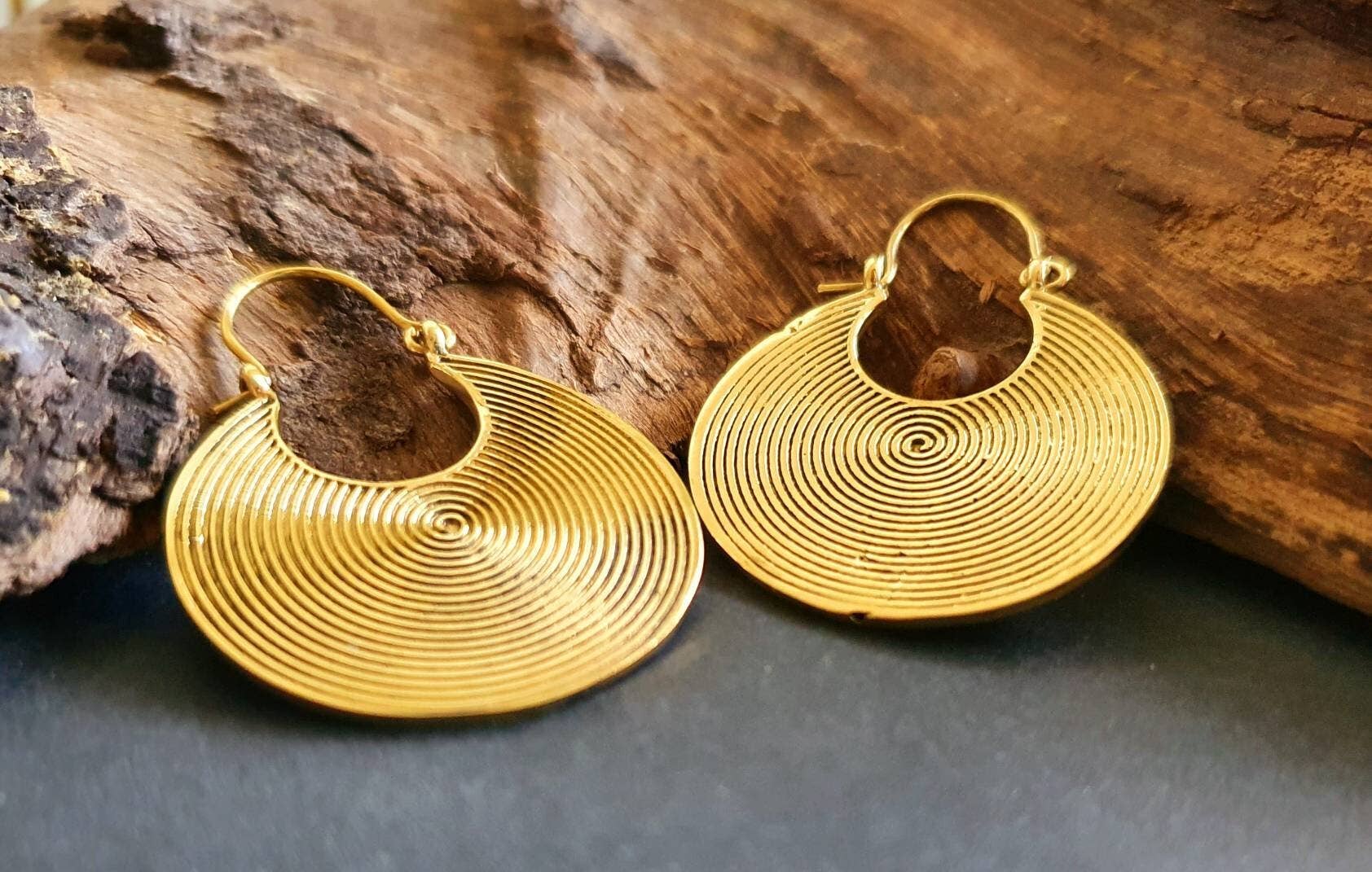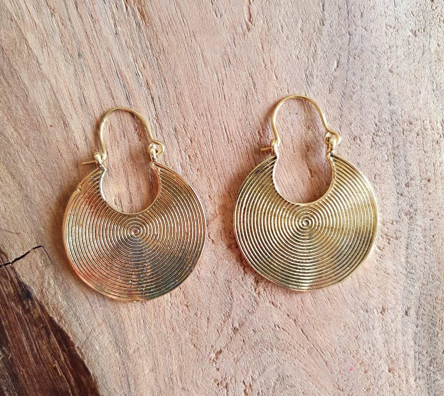 Geometric Circle Tribal Brass earrings; Boho Ethnic Rustic Indian Festival Psy Gypsy Spiral Hippie Tribal style
